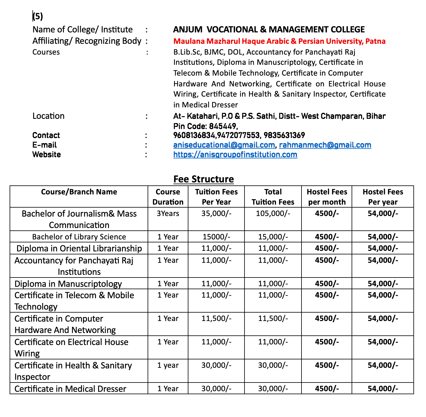 Anjum Vocational College, established in 2025, is a proud unit of the Anis Group of Education. Dedicated to empowering students with quality education and practical skills, the college offers a wide range of degree, diploma, and certificate programs designed to meet the demands of today’s competitive world.